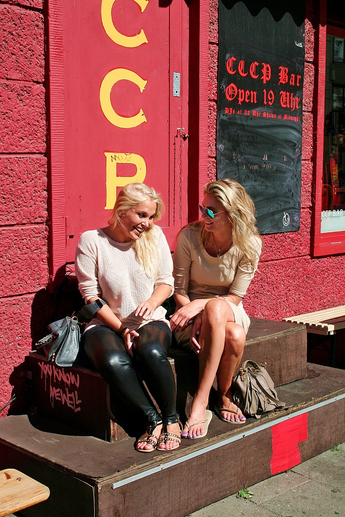 12. Juni 2014 Sonja und Ivana vor Sowjet-Nostalgie-Bar „Wir tragen, was Berlin erlaubt! Die ungehemmte Vielfalt der Bezirke mit ihren verschiedenen Kulturen lässt dich schick, sportlich, bunt und einfach nur „du selbst sein“!“